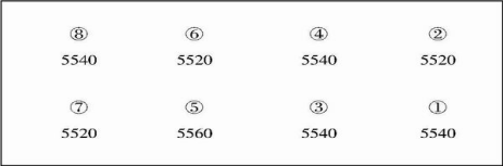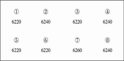 按照調試方法4,將6220定為調試基準點,分別調試修正②、④、⑦、⑧傳感器角差,測得各角對應系數分別為:②1.00458,④1.00427,⑦1.00412,⑧1.00307。